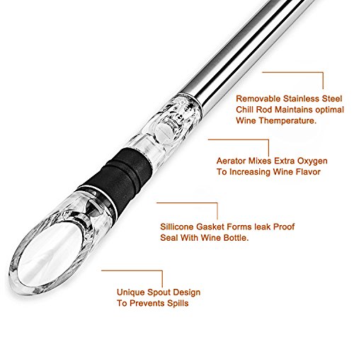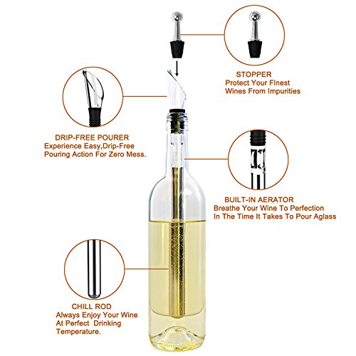 Wine Chiller Sticks, 3-in-1 Stainless Steel Wine Bottle Cooler Stick with Aerator and Pourer (Wine Chiller Sticks)