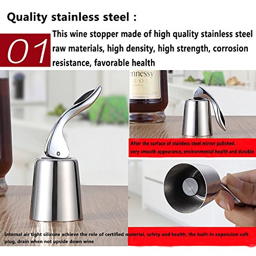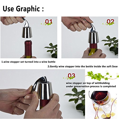 Wine Stoppers Stainless Steel, ProCIV Set of 3 Red Wine Bottle Stopper Vacuum Sealed Bottle Plug Keep Wine Fresh (BottleStopper)