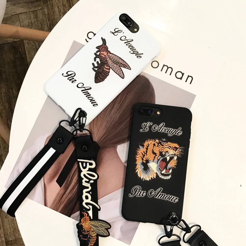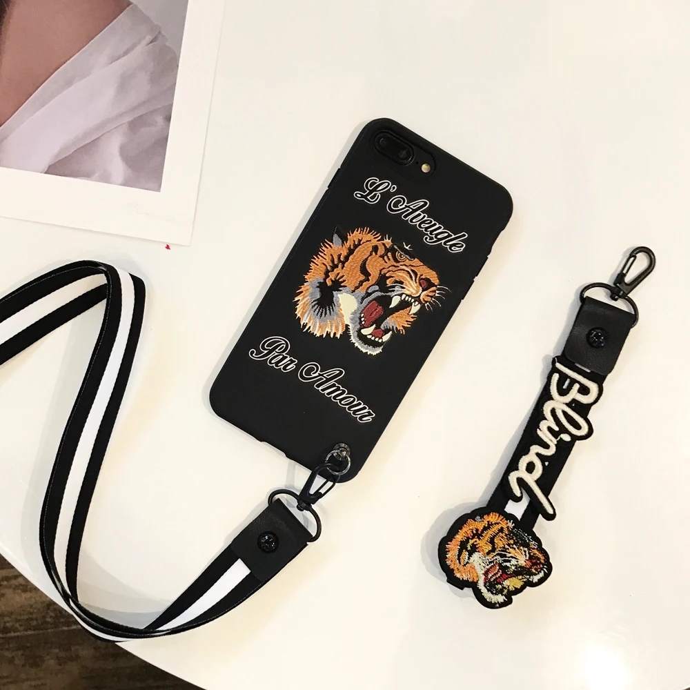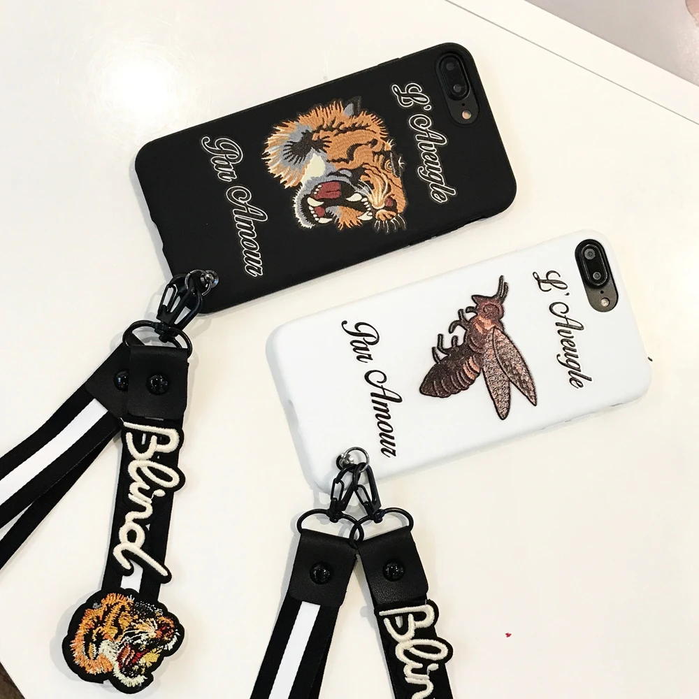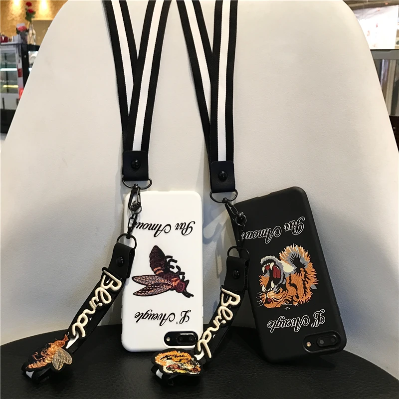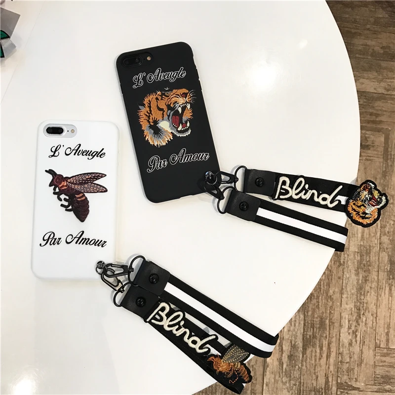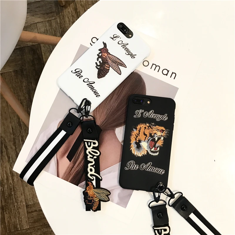 Features:Bee Tiger Pattern TPU With Free Lanyard Case