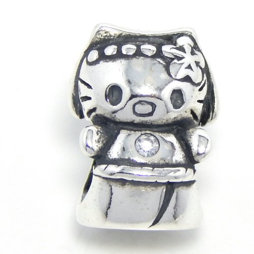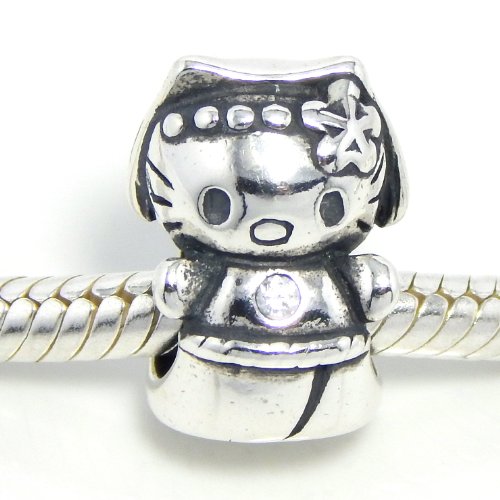 Pro Jewelry .925 Sterling Silver "Hello Kitty w/ Clear CZ" Charm Bead for Snake Chain Charm Bracelets