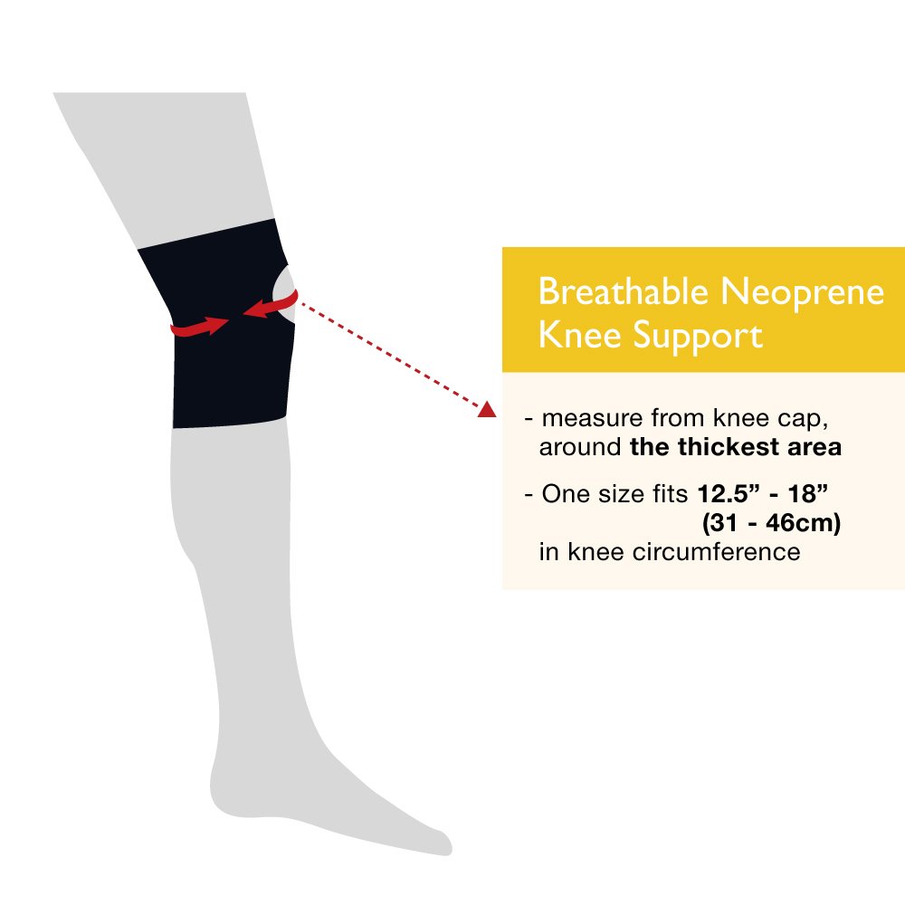 With three Velcro belts and fully adjustable design, it fits both knees with 31 to 46 cm of outer circumference of the knee.