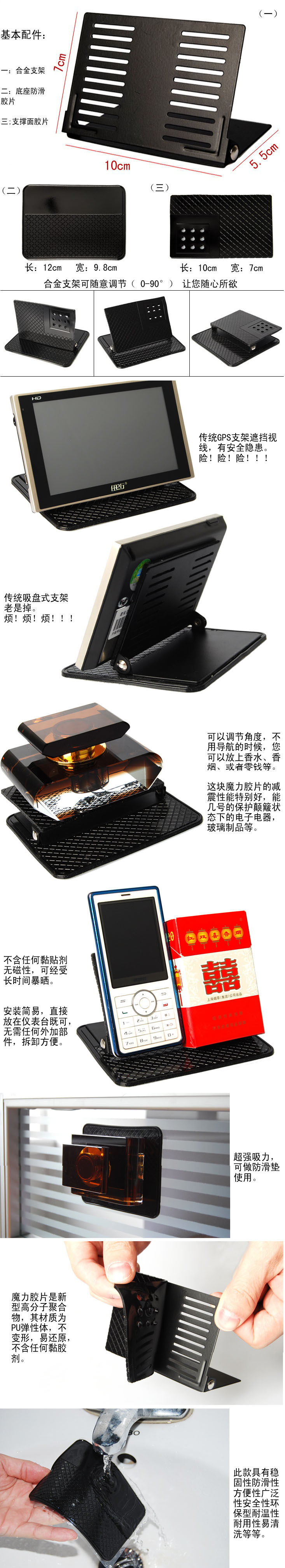 Use: latest desktop magic car phone holder car phone holder magic GPS navigation support, the direct use of the latest technology silicone fixed navigation or mobile phones and other electronic devices directly fixed to the dashboard, with multi-angle spray metal stents, set anti-bump + installation + Multipurpose in one convenient! !