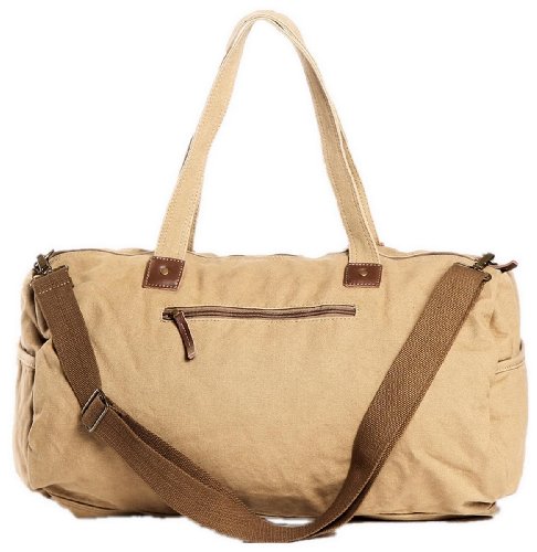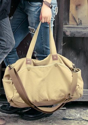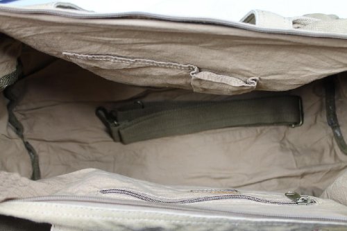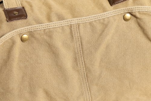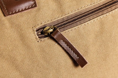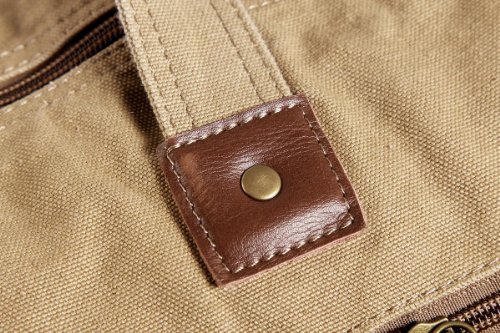 -. Feature : Dimension: 18.5 * 10 * 10" / Top zipper closure;big front botton closure pocket / Two sides of button closure pockets; internal zipper pocket / Can be carried either by one shoulder or crossbody / Vintage brass fitting hardware;16oz durable thick canvas
