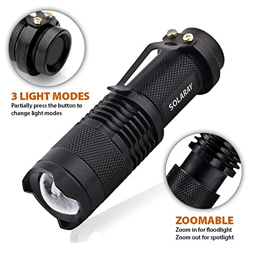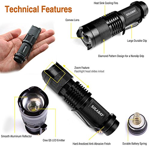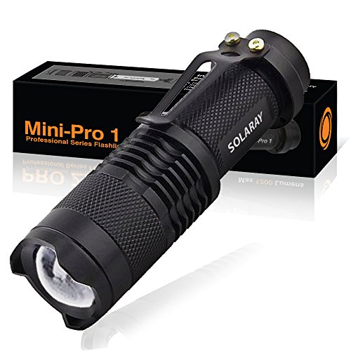 The Solaray Mini Pro-1 is a small but High Performance, High Quality, Super Brite, LED Flashlight with versatile Adjustable Zoom Focus Lens for Close Up and Long Distant Lighting Needs. You’ll want to keep one handy in multiple locations such as Vehicles, Computer Desks, Garages, Bedrooms, Basements, Boats and many other locations.