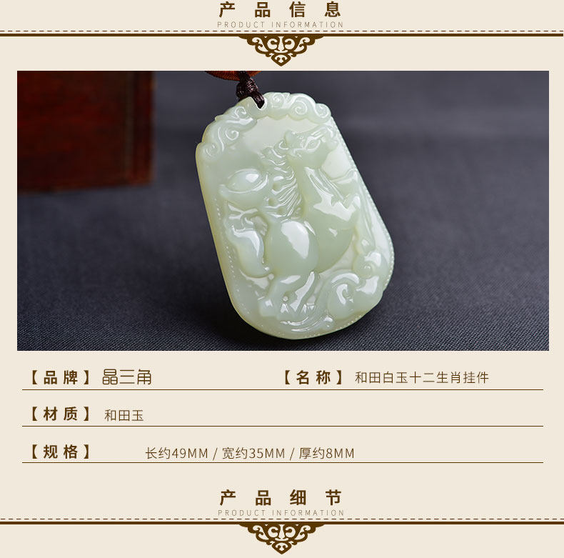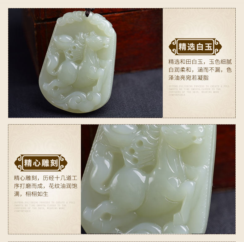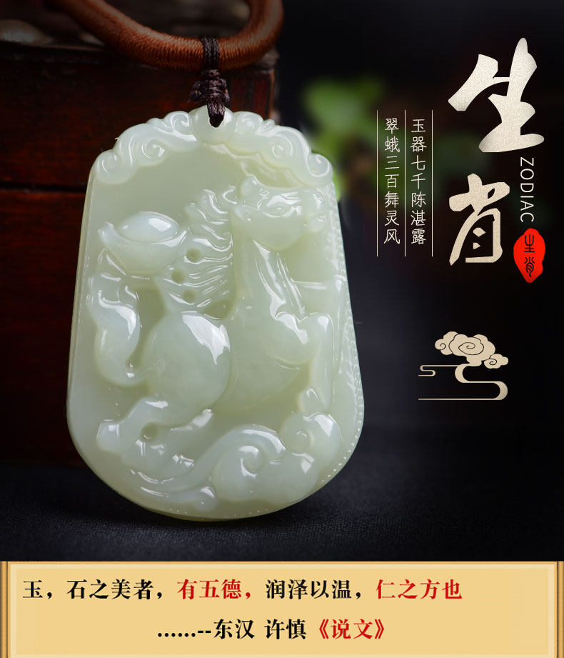 开光和田玉十二生肖吊坠属马白玉挂件男女款项链玉坠玉佩饰品礼物