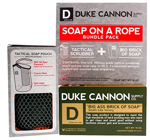 You will receive a Duke Cannon Soap On A Rope Bundle Pack: (1) Tactical Body Scrubber and (1) Duke Cannon Big Brick of Soap, 10 oz