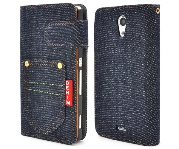 Xperia UL SOL22用デニムデザインスタンドケースポーチ(ジーンズデザイン)
