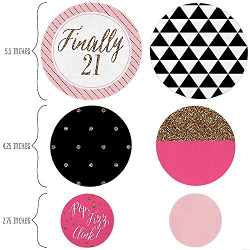 -. Feature : Finally 21 Girl - 21st Birthday - Confetti and Balloon Birthday Party Decorations - Combo Kit / #2 - Mylar Balloon size is 34" - #1 - Mylar Balloon size is 34" / 16 Pack of 11" latex Balloons - (8 Hot Pink & 8 Black). Balloons will arrive flat. / 27-piece Party Table Confetti Kit Contains: 6 - 5.5 inch party circles, 9 - 4.25 inch party circles, 12 - 2.75 inch party circles / Please note, this is faux glitter - it's P.R.Inted to look like glitter, but it is not real glitter.