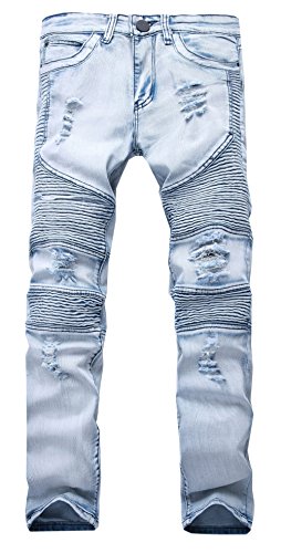 -. Title : Allonly Men's Stylish Casual Slim Fit Straight Leg Stretch Wrinkle Design Biker Jeans Pants With Broken Holes