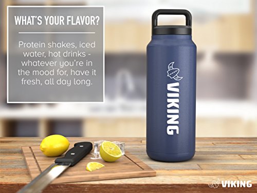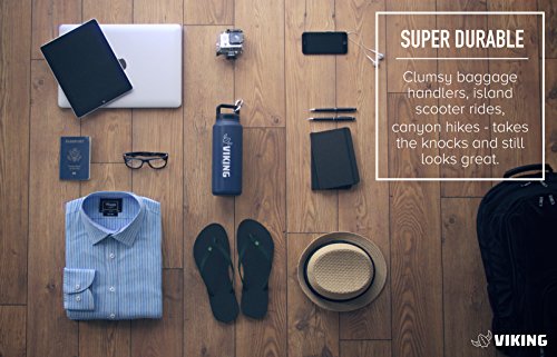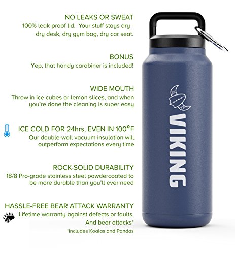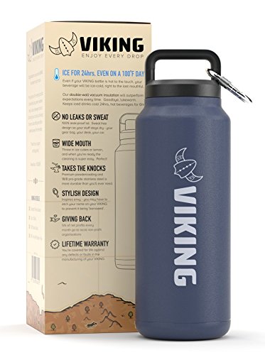 VIKING VACUUM INSULATED PREMIUM STAINLESS STEEL WATER BOTTLE 36oz w/ free carabiner - KEEPS ICE 24HRS IN 100 DEGREES - Super Durable, Wide Mouth, Double Walled, Zero Leaks or Sweat