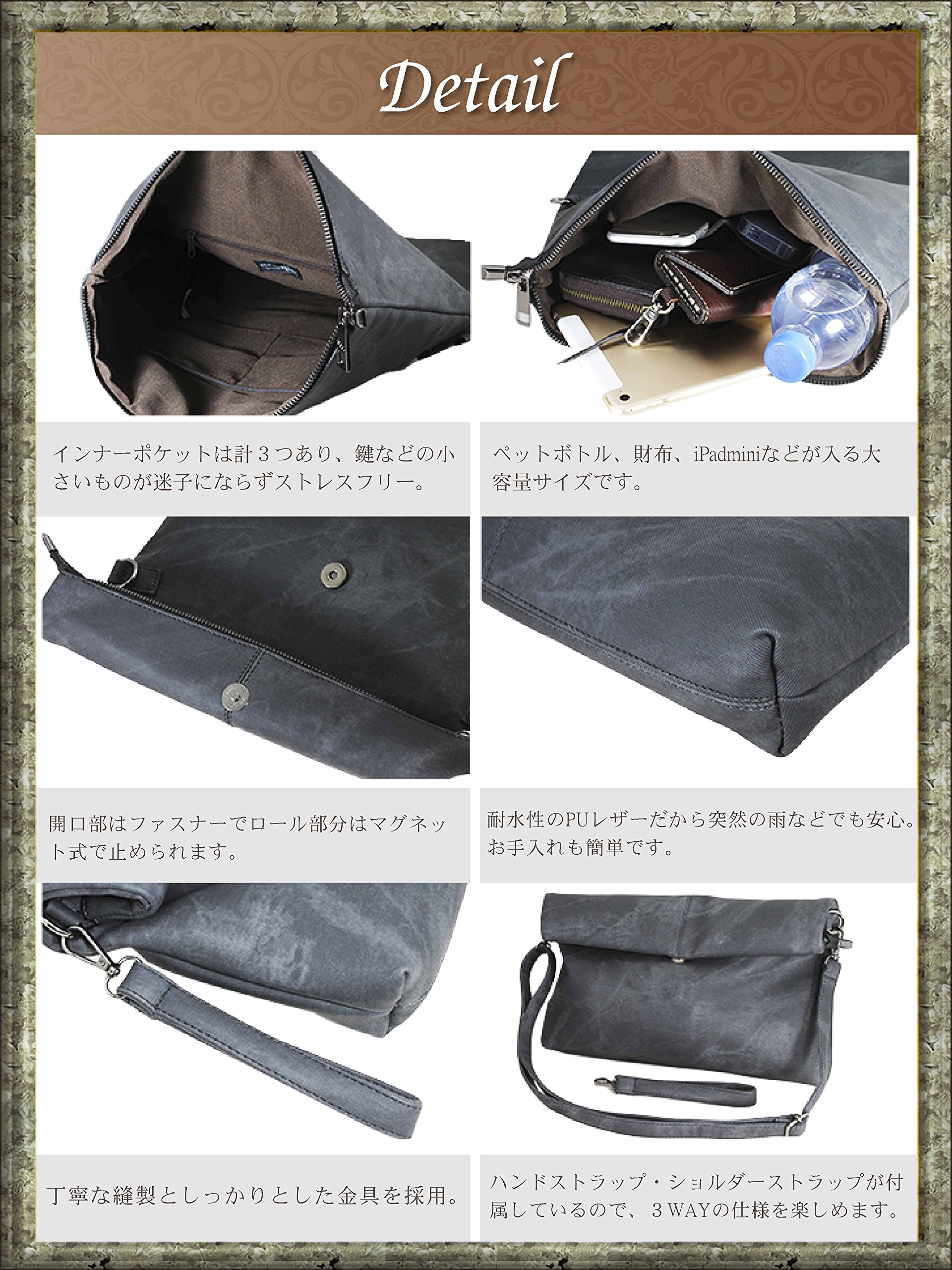 · If you stretch the roll part and arrive at the strap, you will transform into a shoulder and diagonal hanging bag of quite large capacity!