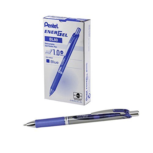 Pentel EnerGel RTX Retractable Liquid Gel Pen, Bold Line, Metal Tip, Blue Ink, Box of 12 (BL80-C)