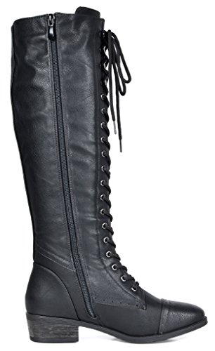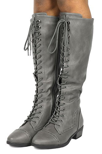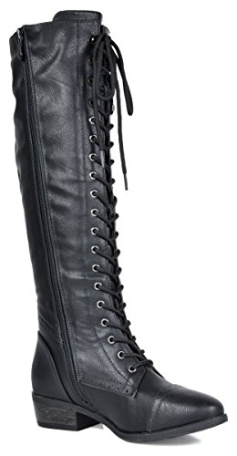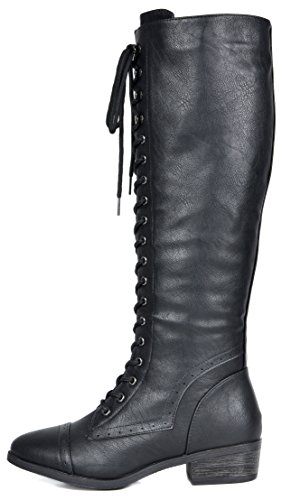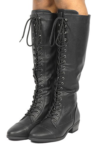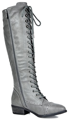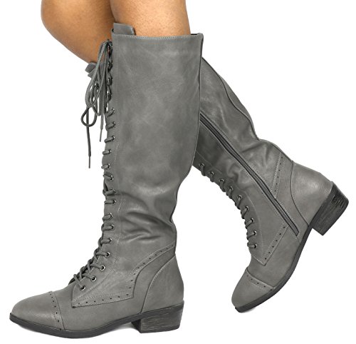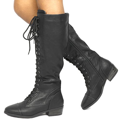 Product Description With its lace-up vamp, this Dream Pairs riding boot is an elegant twist on the classic military boot. It features with cap toe, and lace up front. The interior side zipper keeps an embellished style easy to wear. 0