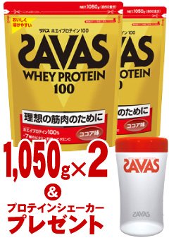 -. Title : ザバス SAVAS ホエイプロテイン100 ココア味 1.050g (50食分)×2個セット (プロテインシェーカー1個プレゼント)