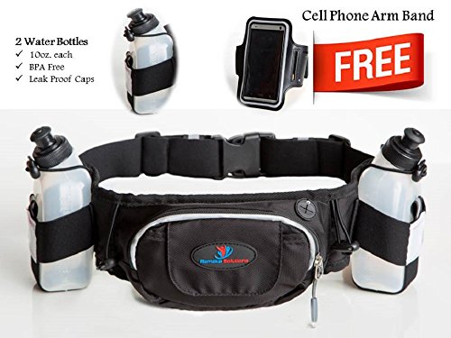 Ramaka Solutions Hydration Running Belt includes 2 generous 10-ounce bottles to provide fuel for the most grueling runs. Our leak-proof, BPA-free bottles are strategically spaced to prevent contact with your limbs as you run. Polyester elastic holsters expand for easy 1-handed use of bottles, and double-sewn elastic bungee cords keep them securely in place.