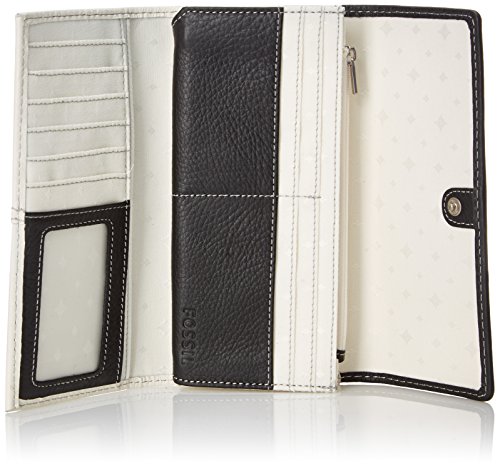 - Feature : Signature jacquard lining - 100 polyester interior / Interior features 12 credit card slots, an ID window, two slide pockets, two gusseted pockets and one zipper pocket / Exterior features a back zipper pocket / Snap closure