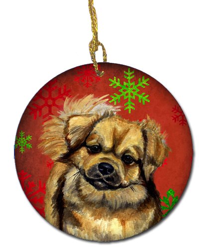 Caroline's Treasures LH9349-CO1 Tibetan Spaniel Red Snowflake Holiday Christmas Ceramic Ornament, Multicolor
