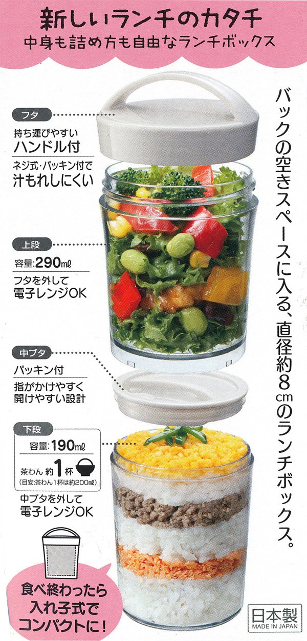 ● Tumbler type lunch box easy to put in the bag.