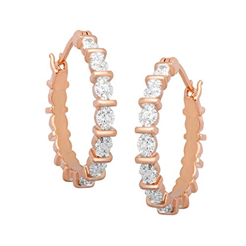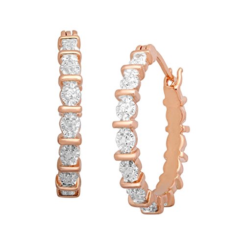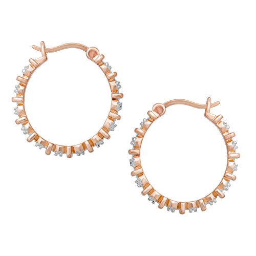 Give your hoop collection a modern update with this rose gold-plated pair. Crafted in 18K rose gold over brass these earrings are complemented with round-cut diamond accents. Pieces measure 7/8 inches in diameter.Feature