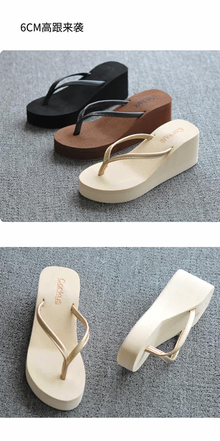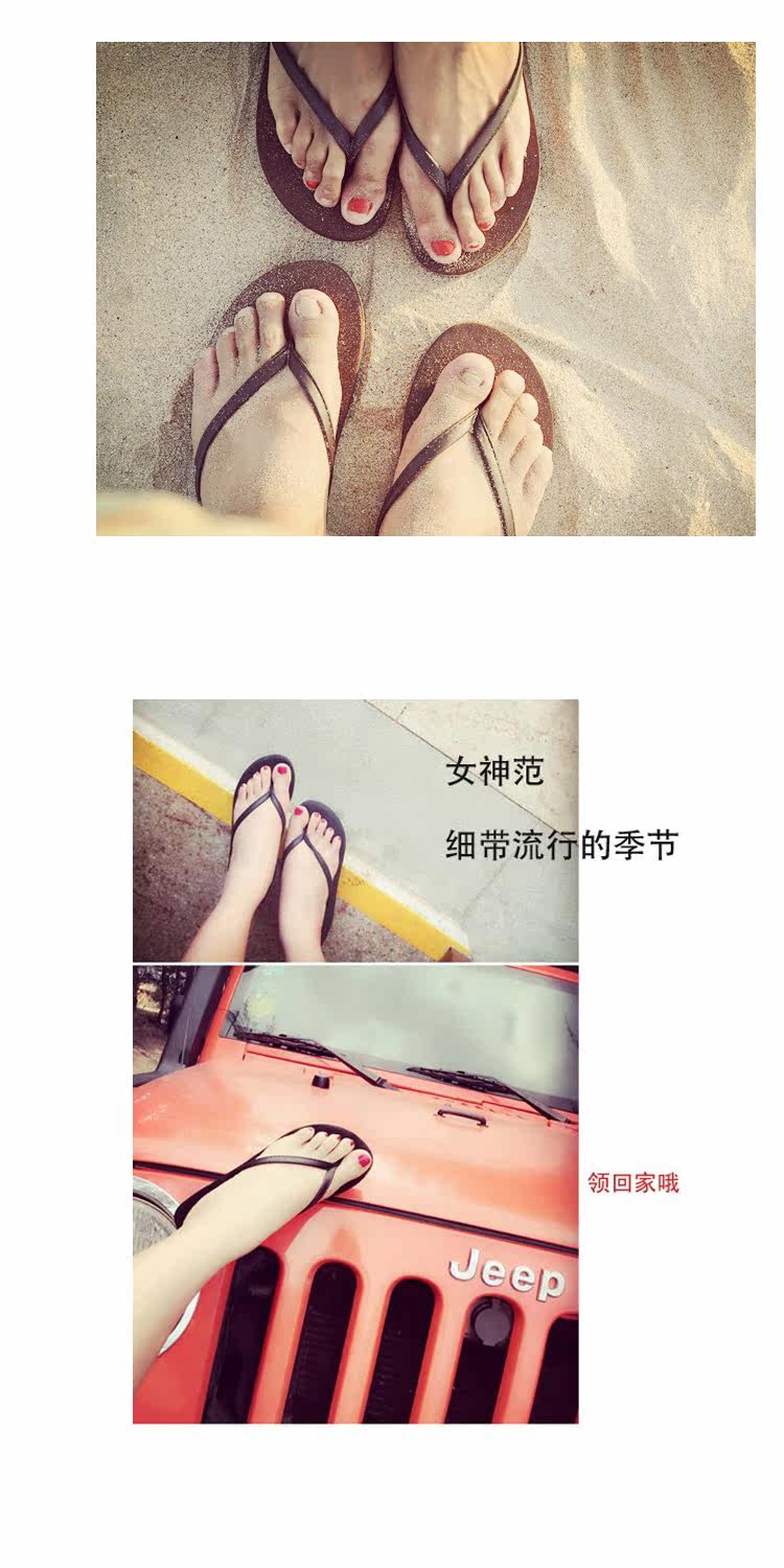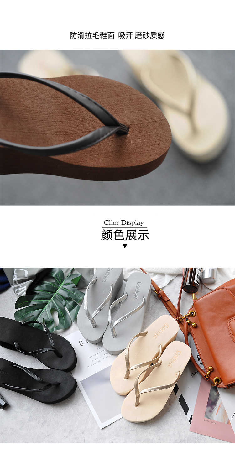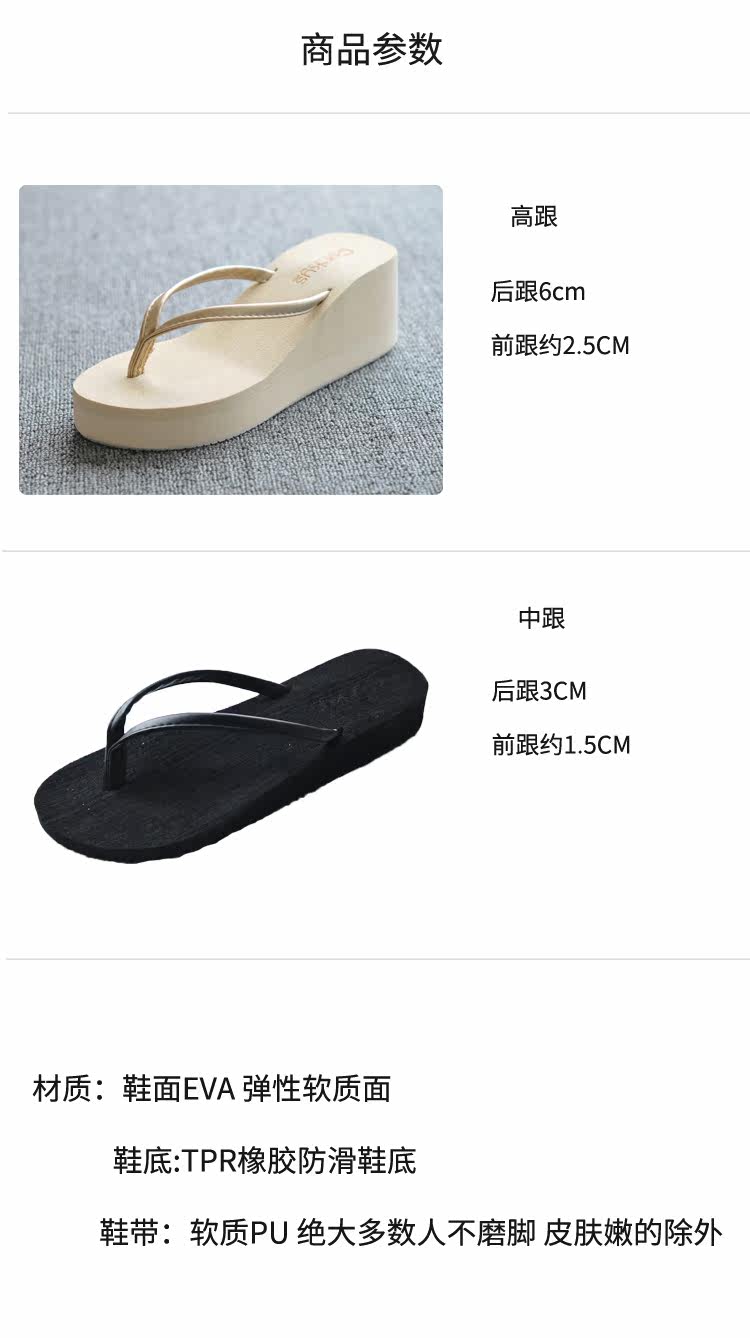 夏季时尚韩版纯色大码人字拖鞋女防滑厚底坡跟简约度假沙滩凉拖鞋