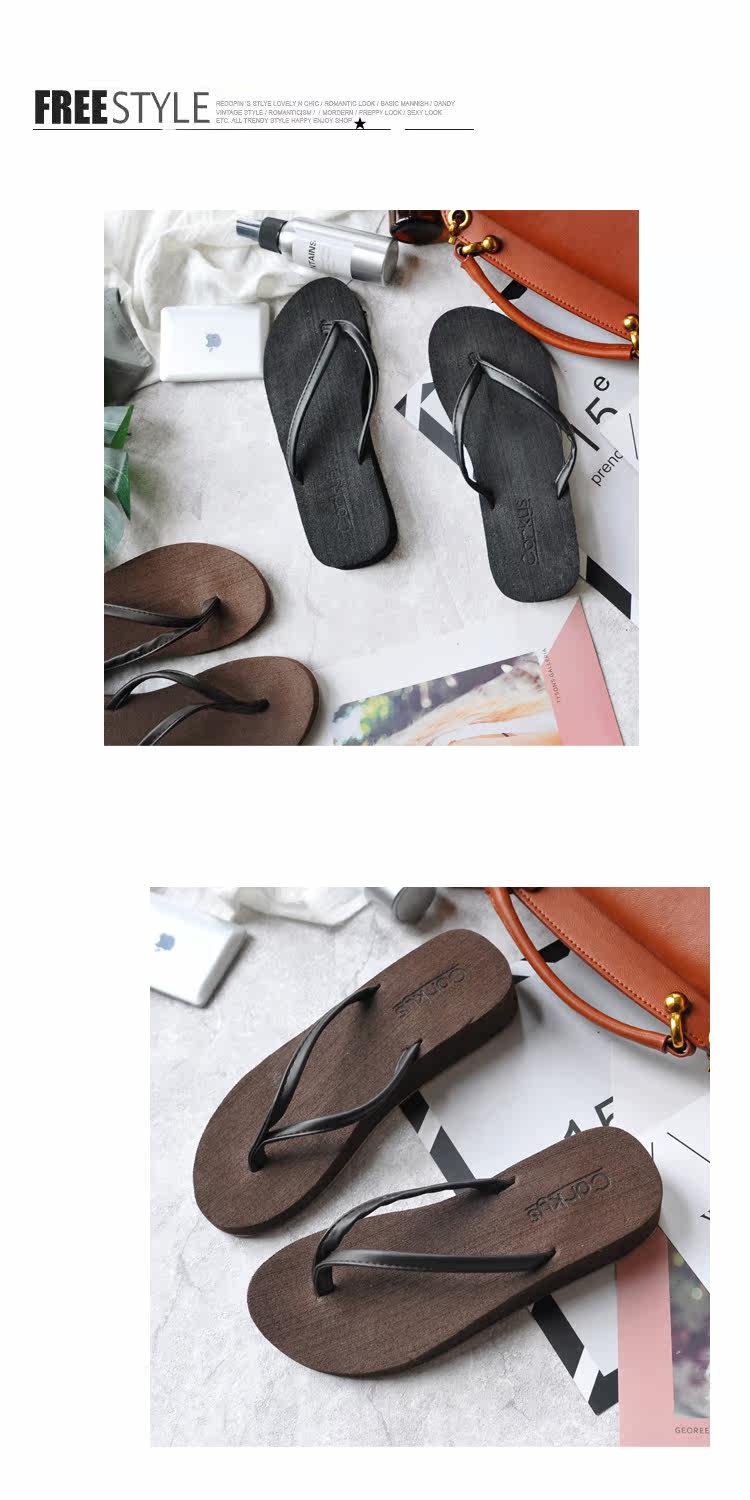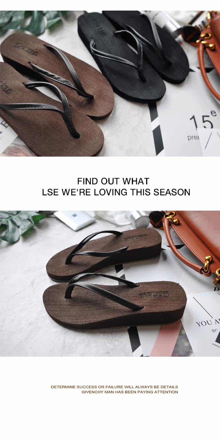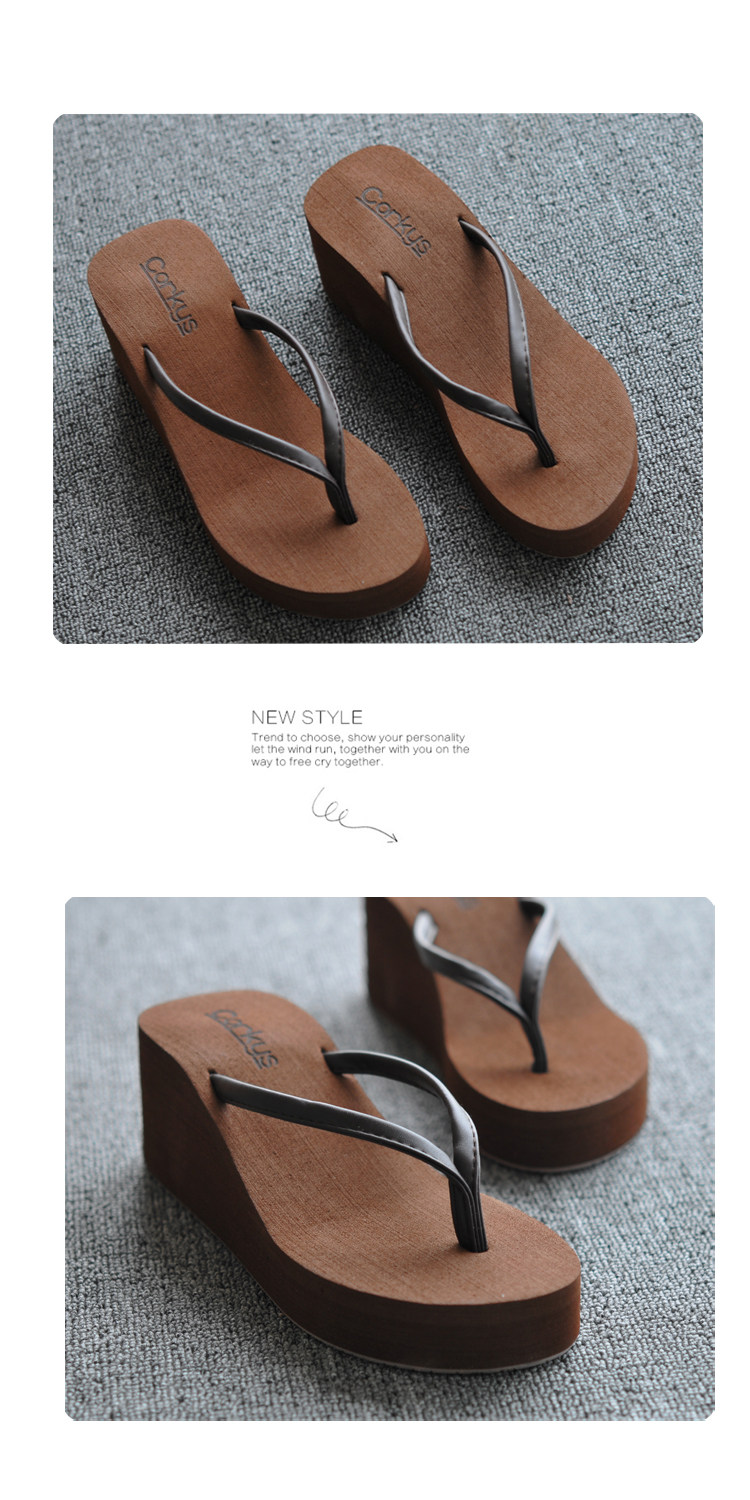 夏季时尚韩版纯色大码人字拖鞋女防滑厚底坡跟简约度假沙滩凉拖鞋