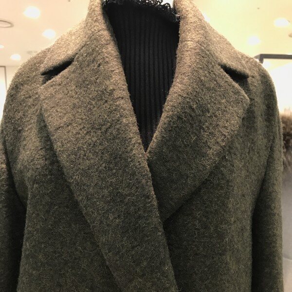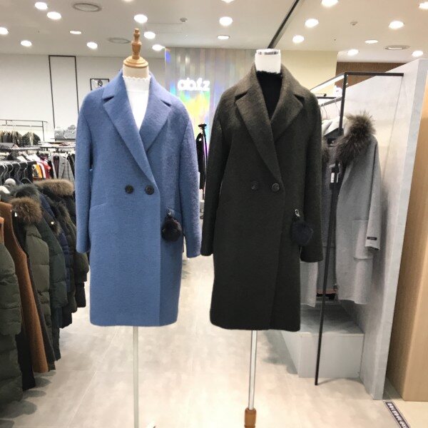 폼폼장식이 포인트된루즈핏 모직 롱코트입니다