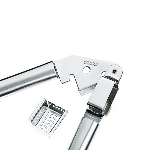 ✔CONVEINIENT --- Our superior plate design is specifically developed with prongs that fit exactly into the holes of the press so that all garlic is completely crushed and there is no residual garlic left in the holes. This means maximum garlic is pressed and no need for a separate attachment to clean the garlic from the holes in the hopper.