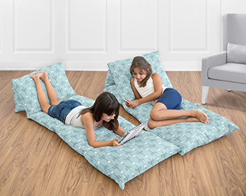 Add extra seating space that's kid friendly with a Floor Pillow Lounger Cover by Sweet Jojo Designs. Just insert 5 standard pillows of your choice into each of the connected zippered cases and you're ready for anything! Lay flat to lounge or fold under to use in a seated or reclining position. Great for playing video games, watching movies, napping, reading, and much more.Feature