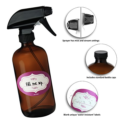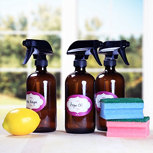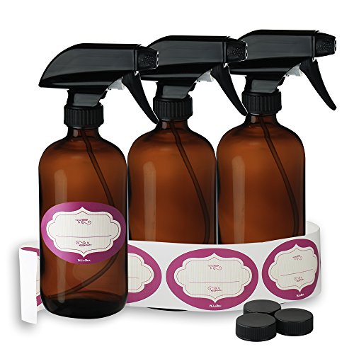 Dilabee Pack of 3, 16 Oz. Refillable, Amber Glass Spray Bottles for Cooking, Cleaning, Gardening, Aromatherapy, Natural Beauty Products - Includes Adjustable Spray Top And 3 Bottle Caps