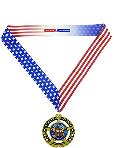 3.75 inch Gold Kindergarten Graduation Star Medal with Red, white & blue v-neck ribbon