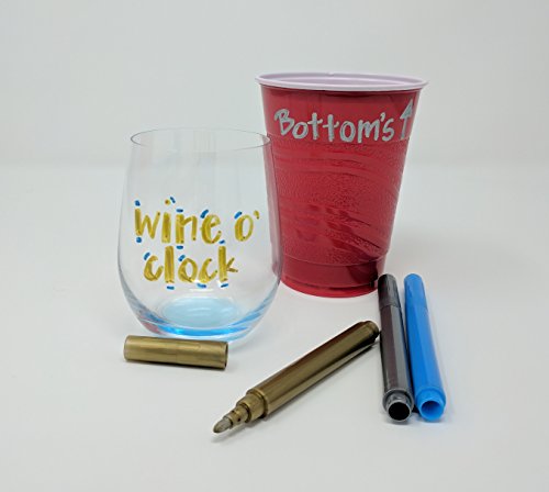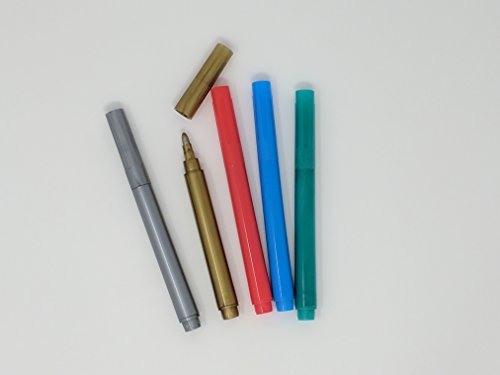 Happymarker Washable Metallic Paint Marker Set - Pack of 5 Non-Toxic Eco-Friendly Metallic Markers, Smudge Proof and Clean with Water - for Silicone Bags, Wine Glass Markers, Window Glass Marker