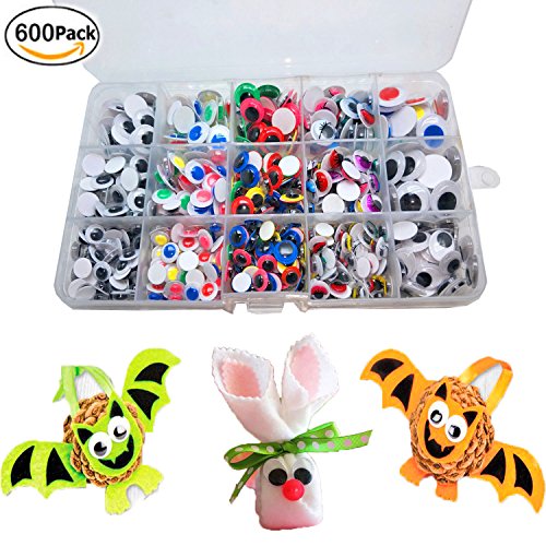 - ♥ Great Assortment of Sizes - A box contains 600 pcs wiggle eyes in 5 different sizes--Round: 8mm, 10mm, 12mm, 15mm; Oval: 10*13mm