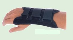 -. Feature : Ideal recovery brace and splint to combat tendonitis, post-cast healing, soft tissue injuries and carpal tunnel syndrome / Features a right-handed small brace that is 8" in length and for wrist circumferences of 6-1/4"- 7-1/4 / Durable lightweight fabric is Lycra-lined for breathability and patient comfort / Removable aluminum palmar stay provides correct fit and proper support and includes easy to use D-ring closures for secure comfort / Latex free