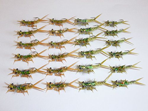 -. Title : 24 Artflies Realistic Stonefly & Salmon Nymph, Golden and Olive Special Pack, #12 #14