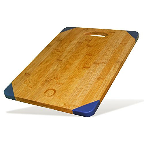 Leading Gourmet Non-Slip Bamboo Wood Cutting Board - Organic Eco-Friendly Kitchen Chopping Tray and Cheese Plate or Gift, 15.6x11.5x0.7 Inch, Blue Silicone Edge Feet