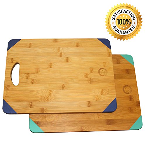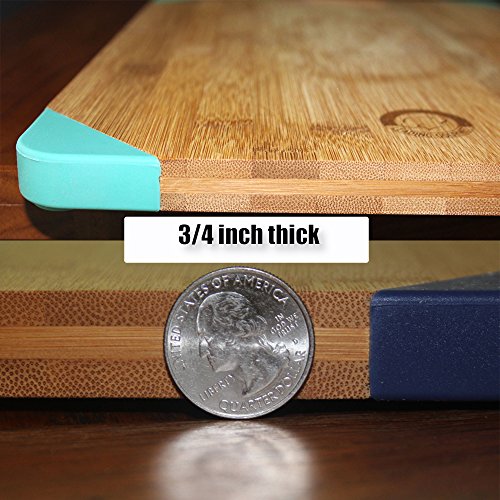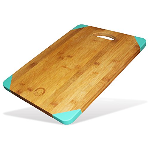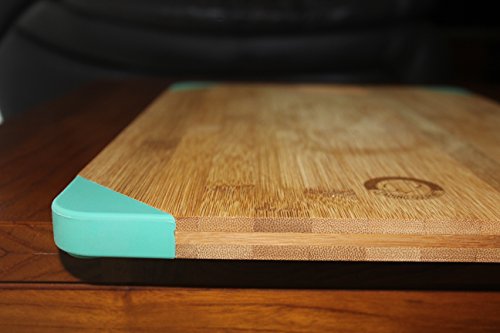 Leading Gourmet Non-Slip Bamboo Wood Cutting Board - Organic Eco-Friendly Kitchen Chopping Tray and Cheese Plate or Gift, 15.6x11.5x0.7 Inch, Teal Silicone Corner Feet