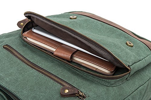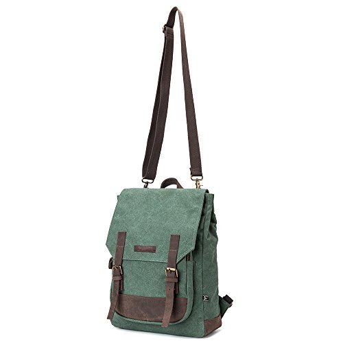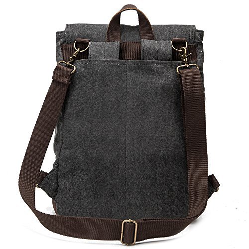 -. Feature : High density soft and thick cotton canvas / Leather decoration, fit 14 inch laptop / Simple design, well sewn craftsmanship / Casual life style,General use for Female & Male / 2 way to carry, backpack or shoulder