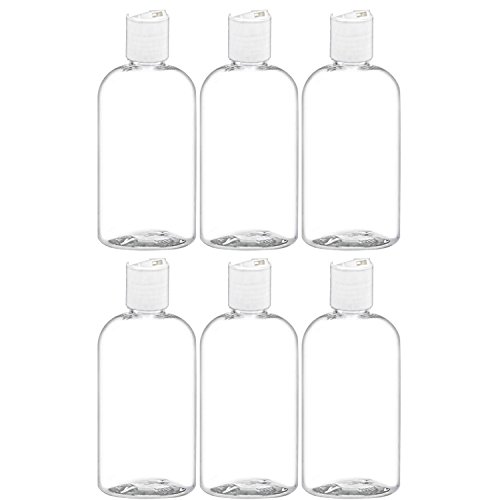 MoYo Natural Labs 8 oz Boston Travel Bottles, Empty Travel Containers with Disc Caps, BPA Free PET Plastic Refillable Toiletry/Cosmetic Bottle (Pack of 6, Clear)