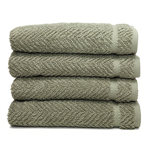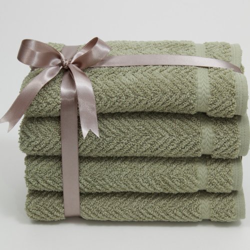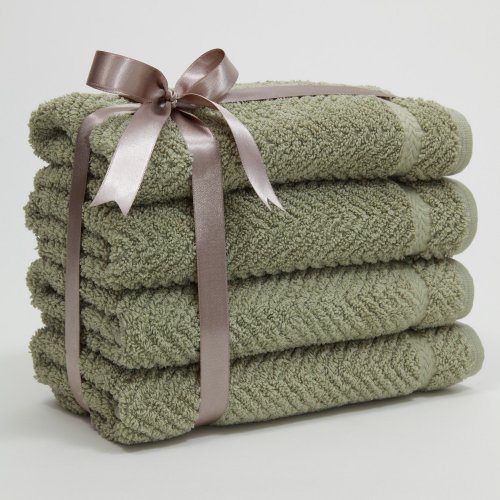 Linum Home Textiles Herringbone Premium Authentic Soft 100% Turkish Cotton Luxury Hotel Collection Hand Towel, Set of 4, Light Olive