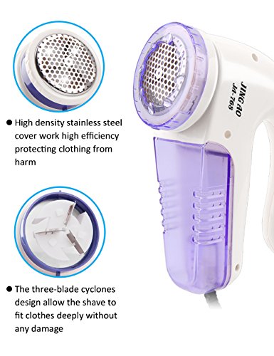 Removable?Storage?Compartment: Excess?fuzz?and?threads?collect?in?the?removable?storage?compartment?for?easy?disposal.?The?high?density?stainless?steel?cove?and?a?three blades?design?for?quickly?removing?stray?threads? and fuzzes without damaging the fabric .