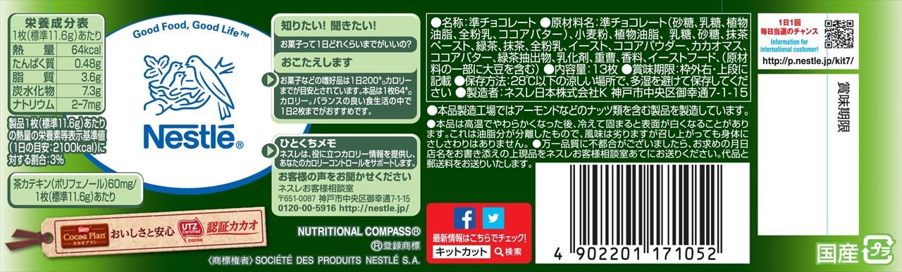 【Characteristics of taste】 In addition to Matcha tea, we realized the highest amount of tea catechin (polyphenol) in "Kit Kit" Matcha Series 3 products, by incorporating tea leaf abundantly into the dough.
