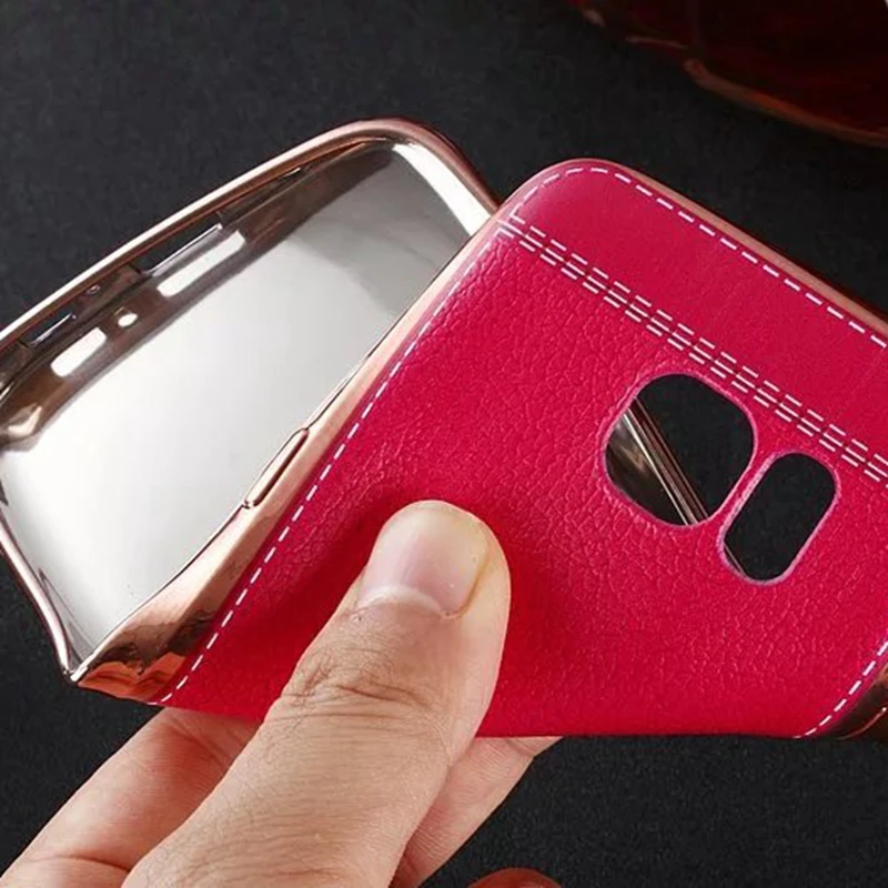 Features:Litchi grain luxury Plating TPU silicone clear Plating Frame cover