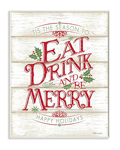 Stupell Home Décor Eat Drink and Be Merry Wall Plaque Art, 10 x 0.5 x 15, Proudly Made in USA