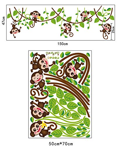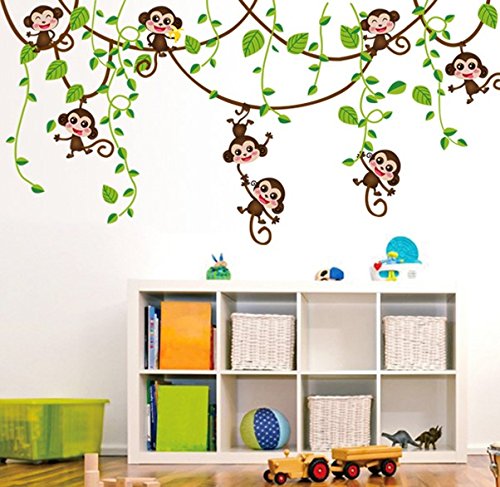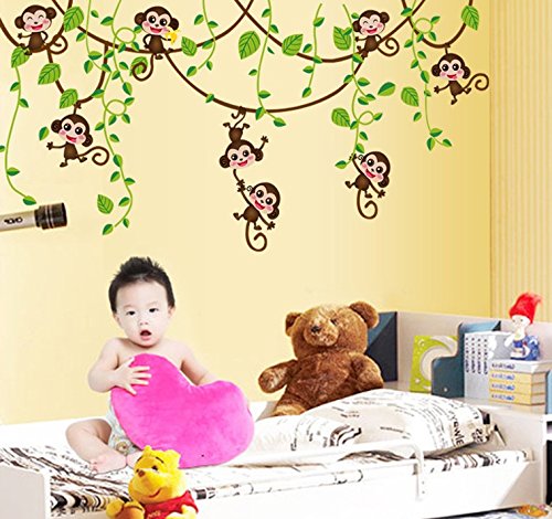 TOTOMO #W146 Eight Monkey Wall Decals Removable Wall Decor Decorative Painting Supplies & Wall Treatments Stickers for Girls Kids Living Room Bedroom