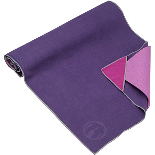Skidless Non Slip Suede Microfiber Hot Yoga Towel - Exclusive Pockets at Each Corner to Secure Your Towel To Your Mat (Tenchi Ears) - Crimson Velvet