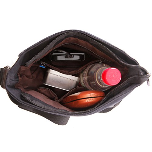 -. Feature : Material: Premium cotton canvas, Made of high density washed cotton canvas and, classical and fashion. Dimensions: 11" W x 11.8" H x 2.4" D,Style: Retro, Casual, Outdoor / Adjustable crossbody strap for easy and comfortable carrying. excellent craftmanship,Nylon suture,bearing well. / Exterior: 1 back zipped pocket; Interior: 1 cell pocket, 1 key pocket, 1 zipped pocket for wallet / Large capacity,many pockets,can be used for a week travel. 100% leather trim,high grade hardware,adjustable and removeable shoulder strap for easy and comfortable carrying when you use it as a shoulder bag. High quality nylon zipper,long life. / This Bag is Perfect for everyday use, with all your daily bits.Keeps essentials and purchases within easy reach and is easy to carry, the bag works well with a variety of different outfits and casual styles.