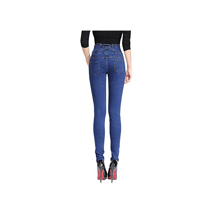 (씨티 영)Cityoung 레이디스 하이 웨스트 4개 버튼 스트레치 데님 청바지 딥 블루 M
