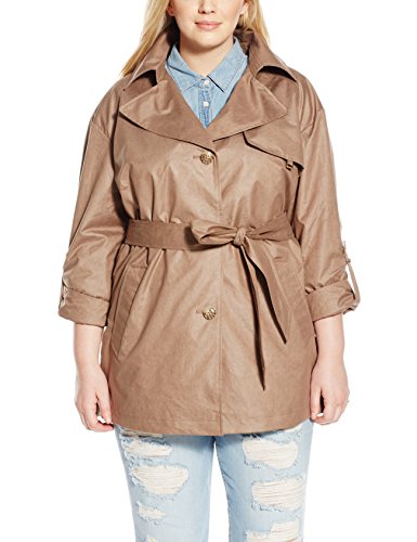 Classic trench coat is updated with roll-cuff sleeves in a soft, peached fabrication