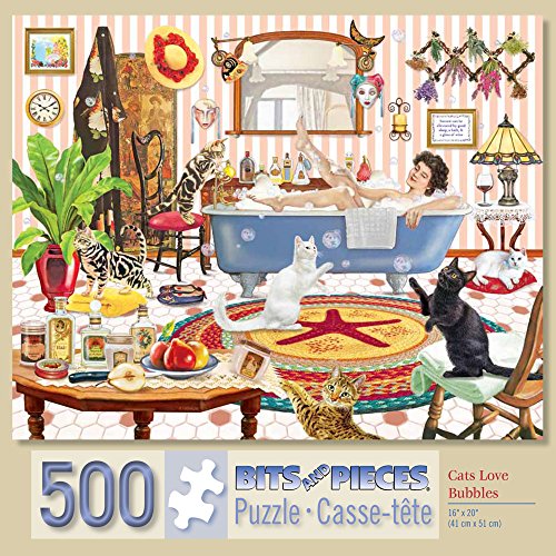 -. Binding : Toy -. Brand : Bits and Pieces -. EAN : 0704812406127 -. Feature : Contains a 500 piece Jigsaw Puzzle designed by artist Rosiland Solomon. / Our Jigsaw Puzzles are made with recycled cardboard. / Die-cut puzzle pieces are easy to handle - and no two are alike. Our 500 Piece Puzzles are exciting and challenging to put together. / Bits And Pieces exceptional jigsaw collection provides original and intriguing gifts for any interest, age or ability. / Puzzle Size is 16" x 20" when completed. -. IsAdultProduct : 0 -. Label : Melville Direct -. Manufacturer : Melville Direct -. MPN : 40612 -. PackageQuantity : 1 -. PartNumber : 40612 -. ProductGroup : Toy -. ProductTypeName : TOYS_AND_GAMES -. Publisher : Melville Direct -. Studio : Melville Direct -. Title : Bits and Pieces - 500 Piece Jigsaw Puzzle - Cats Love Bubbles - Cat Puzzle - by Artist Rosiland Solomon - 500 pc Jigsaw -. UPC : 704812406127