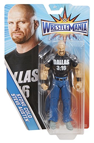 -. Binding : Toy -. Brand : WWE -. EAN : 0887961395853 -. Feature : relive the adrenaline-pumping action and amazing moments of your favorite wwe wrestlemania showdowns with this wwe wrestlemania figure. / Includes articulation, amazing accuracy and authentic wrestlemania details! / pose to spar, pair to battle or create mayhem with multiple figures. / Collect them all and let the wwe wrestlemania begin. / Makes a great gift to any wwe fan! -. IsAdultProduct : 0 -. Label : Mattel -. Manufacturer : Mattel -. Model : DXG48 -. MPN : DXG48 -. PackageQuantity : 1 -. PartNumber : DXG48 -. ProductGroup : Toy -. ProductTypeName : TOYS_AND_GAMES -. Publisher : Mattel -. Studio : Mattel -. Title : WWE WrestleMania Stone Cold Steve Austin Figure -. UPC : 887961395853 -. Warranty : 1 year warranty against manufacturer defects